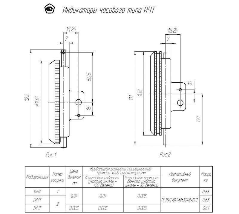 Пример условного обозначения индикатора часового типа 2 ИЧТ - Индикатор 2 ИЧТ ТУ 3942-001-60632410-2012.