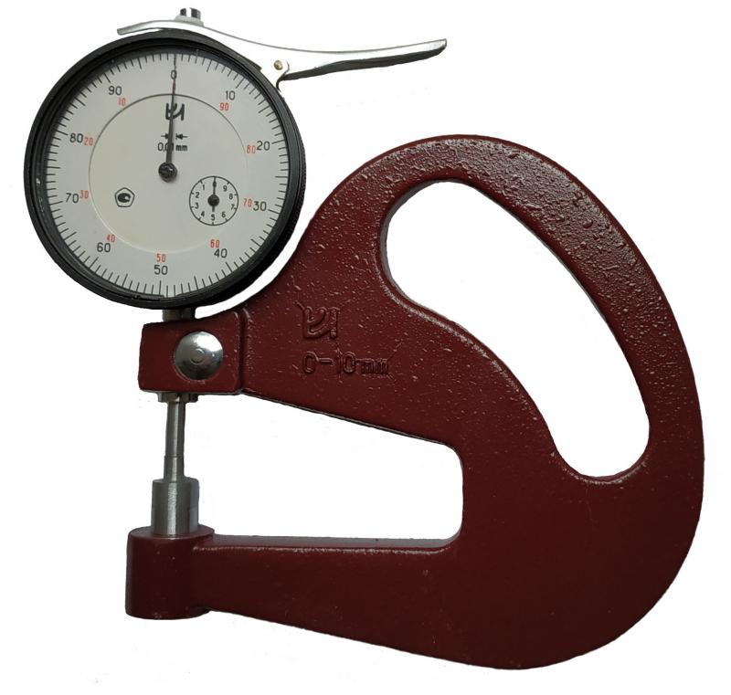 Цена деления 0,01 мм. Диапазон измерения от 0-10 мм. Для измерения толщины листовых материалов. Ручные толщиномеры с нормированным измерительным усилием диаметром 16 мм. ГОСТ 1358-89. Поставляется в двух вариантах с поверкой и без поверки!