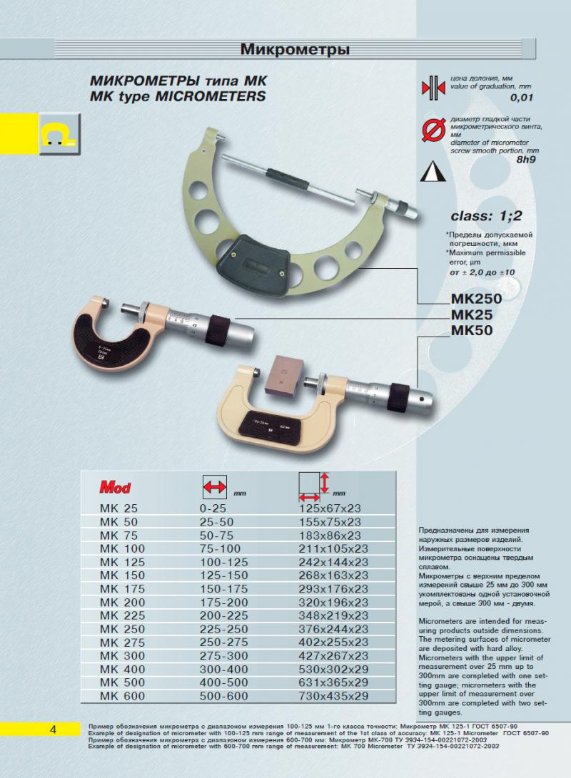 Цена деления 0,01 мм. Диапазон измерения от 225-250 мм. Для измерения наружных размеров изделий. Измерительные поверхности микрометра оснащены твердым сплавом. Микрометры укомплектованы одной установочной мерой. Класса точности 1. ГОСТ 6507-90. Поставляется в двух вариантах с поверкой и без поверки!