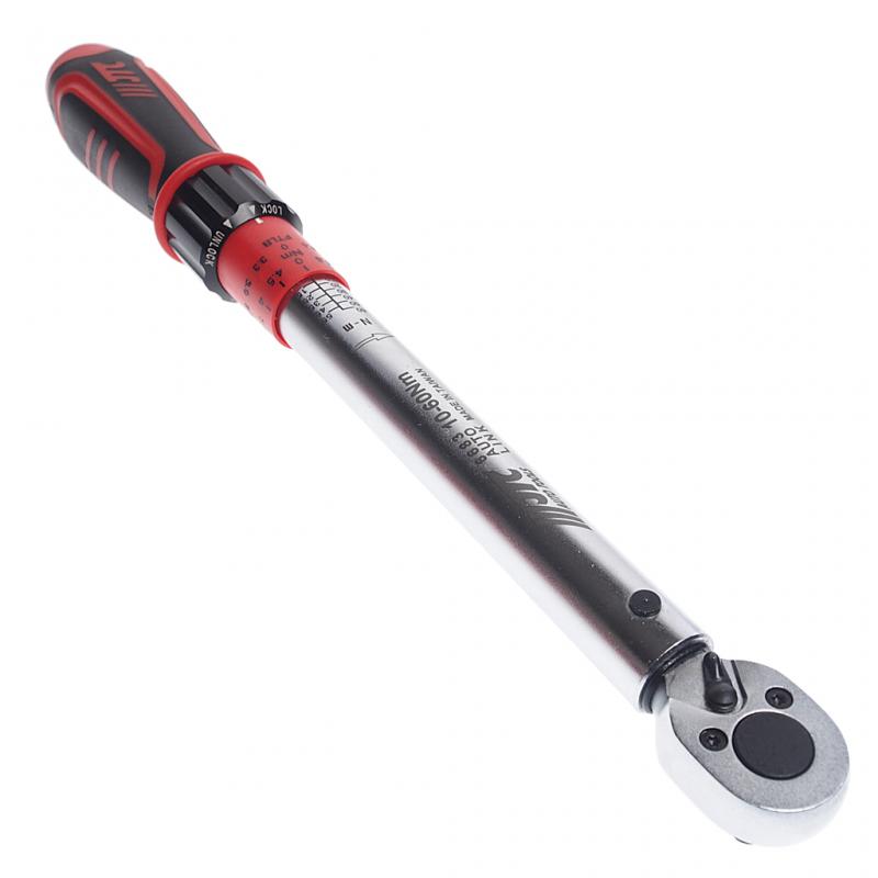 Инструмент обладает высокой точностью, заводская калибровка для работы в пределах ±4% допуск от установленных параметров (согласно стандарту В107.14М. от 20% до 100% диапазона работы инструмента). Удобная рукоятка для повышения точности работ. Надежный храповый механизм. Хромированная поверхность высокого качества. Рукоятка изготовлена из нетоксичного экологически чистого материала ABS. Штампованная шкала. Сертифицирован DIN-ISO и ASME. Посадочный квадрат: 3/8" Диапазон усилий затяжки: 10-60 Н*м / 5.5-46.2 FТ/LB. Длина: 370 мм. Количество зубцов: 24Т.