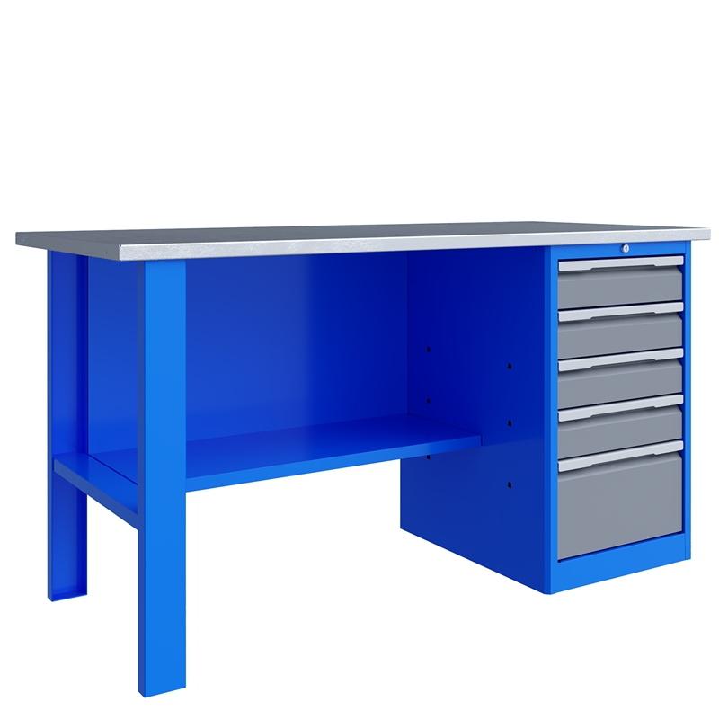 Тумба верстака - сварная. Ящики в тумбе устанавливаются на шариковых телескопических направляющих полного выдвижения. В тумбе P5 установлено четыре малых и один большой ящика. Внутренние размеры малых ящиков (ВхШхГ), не более: 103 х 397 х 520 мм. Внутренние размеры больших ящиков (ВхШхГ), не более: 222 х 397 х 520 мм. Тумбы с ящиками снабжены общим центральным замком с поворотом ригеля 180 градусов и подпружиненной тягой. В комплекте два ключа.
