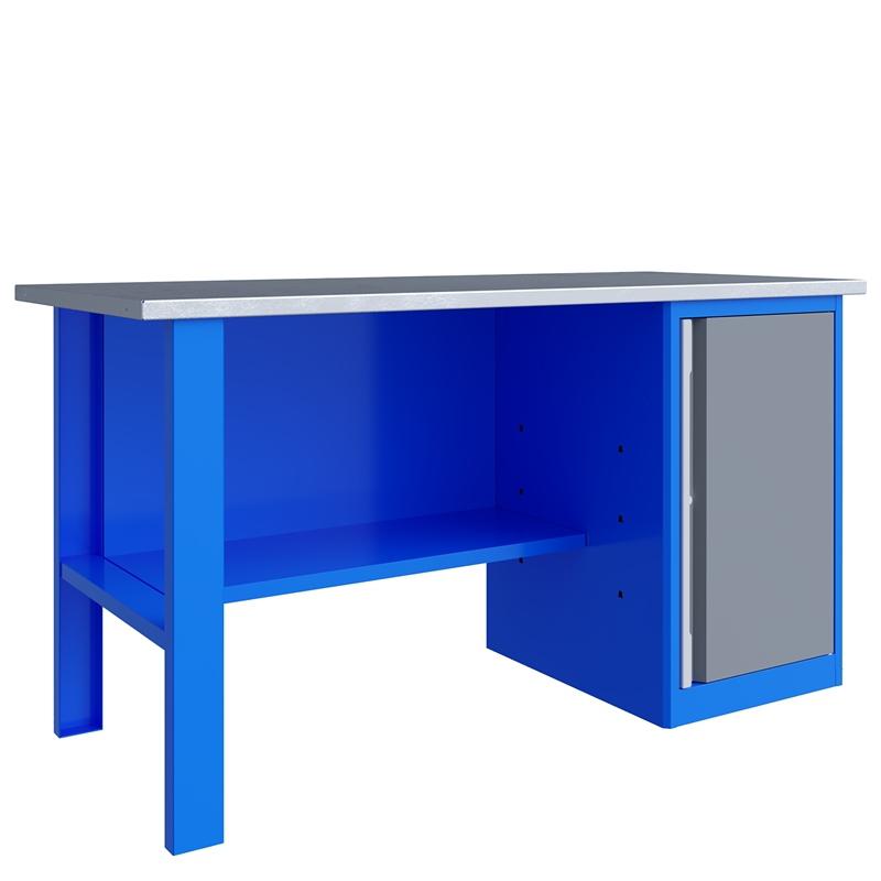 Верстак серии PRF: Верстакофф ® PRF 161.17.3 состоит из столешницы шириной 1596 мм, опоры, тумбы P7 с дверью и двумя полками и полки-стенки.