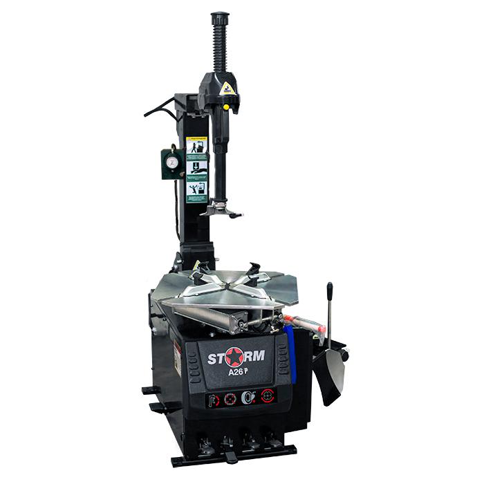 Автоматический шиномонтажный стенд с пневматической фиксацией. Предназначен для работы с дисками до 26”. В станок встроена система быстрой накачки шин, которая позволит оператору освободить руки и ускорить процесс работы.
