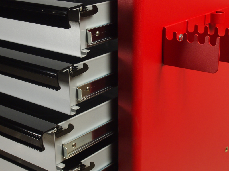 В комплекте: Тележка для инструмента JTC-3931: 7 секций: пять плоских (580х377х59 мм) и два глубоких (580x377x138 мм) выдвижных ящика обеспечивают возможность размещения большого количества рабочего инструмента. Все ящики снабжены быстросъемными полозьями на роликах, полностью выдвигаются и легко вынимаются из тележки. Каждый ящик оборудован двумя индивидуальными фиксаторами, которые предотвращают произвольное открытие ящика во время передвижения тележки. Большая ручка способствует удобному перемещению во время работы. 4 поворотных колеса размером 5" снабжены тормозами и выдерживают нагрузку 200 футов, что обеспечивает высокую маневренность тележки. Специальные приспособления на боковой стенке позволяют размещать ключи с Т-образной рукояткой. Наличие центрального замка обеспечивает дополнительную защиту от несанкционированного доступа к инструменту. Размеры ящика: 580х377х74 мм (153 мм два нижних) Размеры собранной тележки: 687х459х1000 мм. 5 секций с инструментами (344 шт.): 1 секция - K2732, K3082, K3232, K1401. 2 секция - K4082, K4221, K4172, K4241. 3 секция - K4151, K4223, K4181, K8051. 4 секция - K6082, K6084, K6172, K6102. 5 секция - K7102, K7091, K5031, K5043.