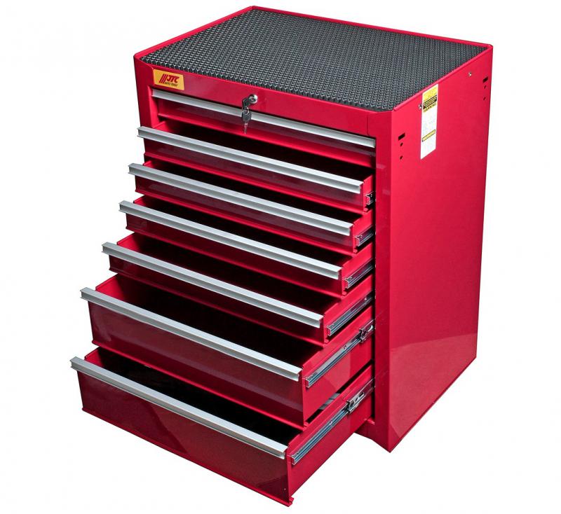 7 секций (эконом-вариант). Размеры ящиков подходят для всех наборов инструментов JTC К-серии. Все ящики оснащены роликовыми направляющими, полностью выдвигаются и легко вынимаются из тележки. Усиленные колеса. 5"х2", 2 прямых и 2 поворотных. Конструкция с двойными стенками. В комплекте поставляется резиновый коврик толщиной 10 мм. Размеры ящика: 580х377х75 мм. (154 мм. два нижних) Размеры собранной тележки: 687х459х1000 мм. Габаритные размеры: 950/750/550 мм. (Д/Ш/В) Вес: 65000 г.
