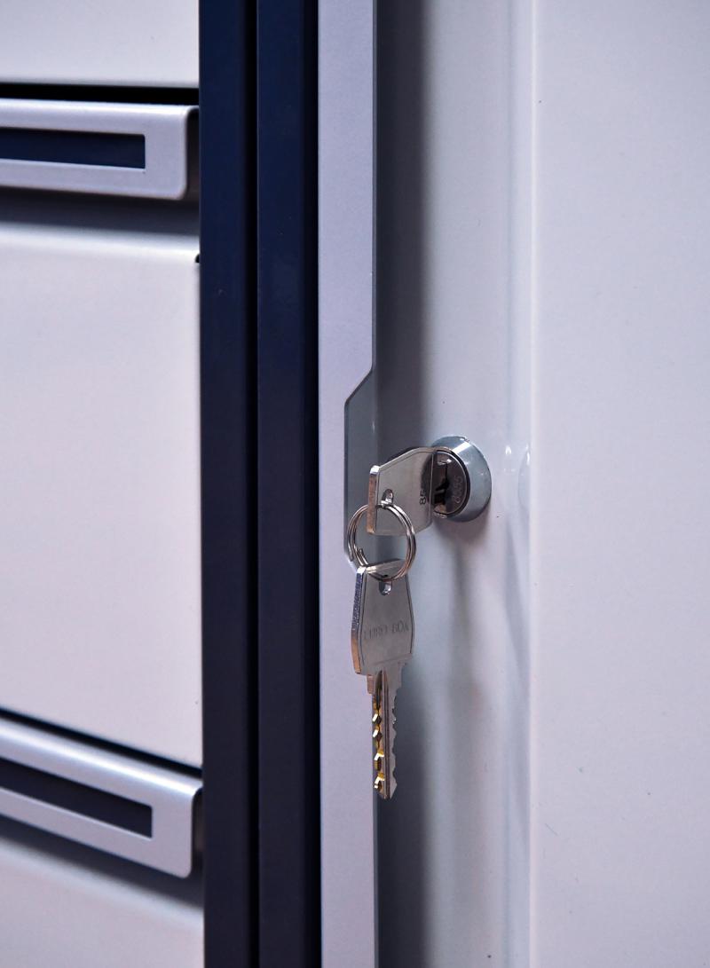 Модули с ящиками снабжены общим центральным замком с поворотом ригеля 180...