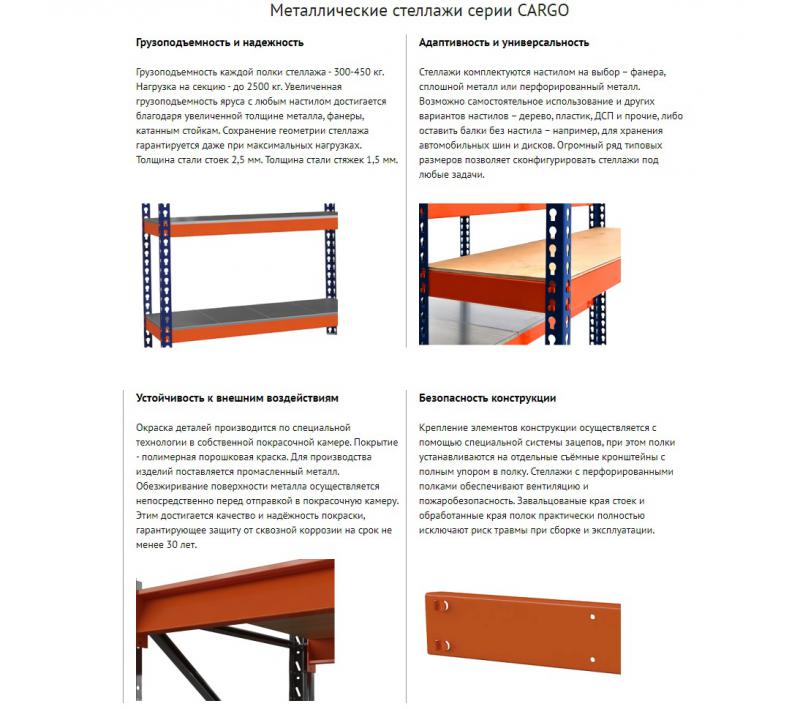 | ТХ (таблица) (Описание) : | Размеры (ВхШхГ) 3000x1240x500 мм Вес 62 кг Толщина полок 0,7 Цвет RAL 5010 (светло-синий), RAL 2004 (оранжевый) |