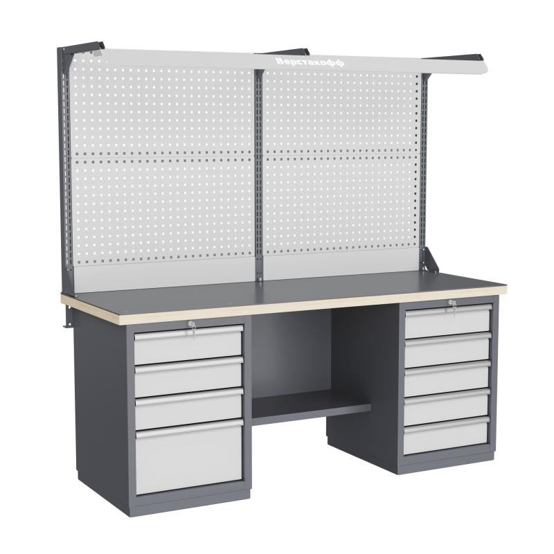 GRAND 205.45.4 Верстак металлический (двухтумбовый) (С двойным экраном и подсветкой)