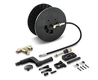 Комплект для монтажа барабана на аппарате. Для надежного хранения шлангов высокого давления с экономией места, с соединительным шлангом, 20 м. Барабан может вращаться под давлением. Соединение M22 x 1,5. Для аппаратов Karcher HD экстра класса.