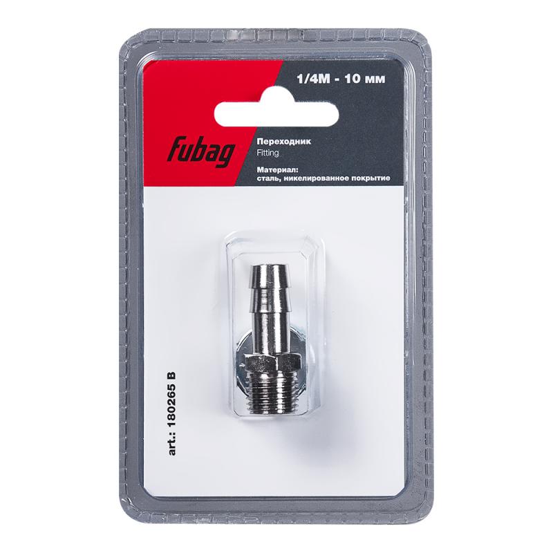 FUBAG Переходник 1/4 дюйма М на елочку 10мм с обжимным кольцом 10x15мм, блистер 1 шт