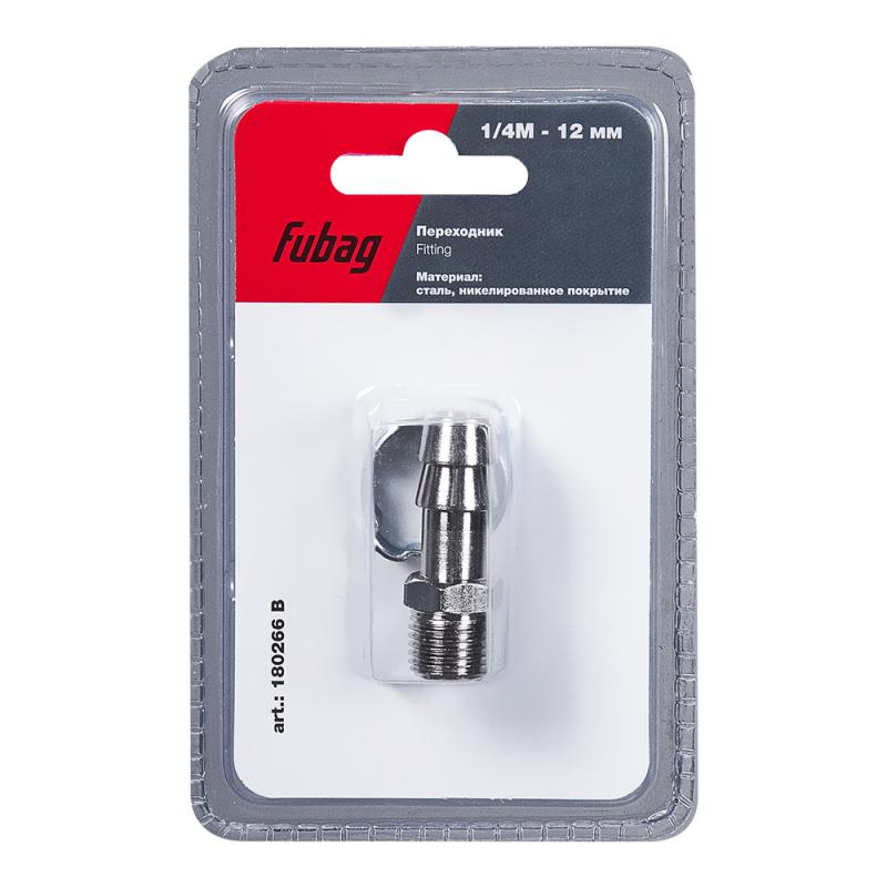 FUBAG Переходник 1/4 дюйма М на елочку 12мм с обжимным кольцом 12x17мм, блистер 1 шт