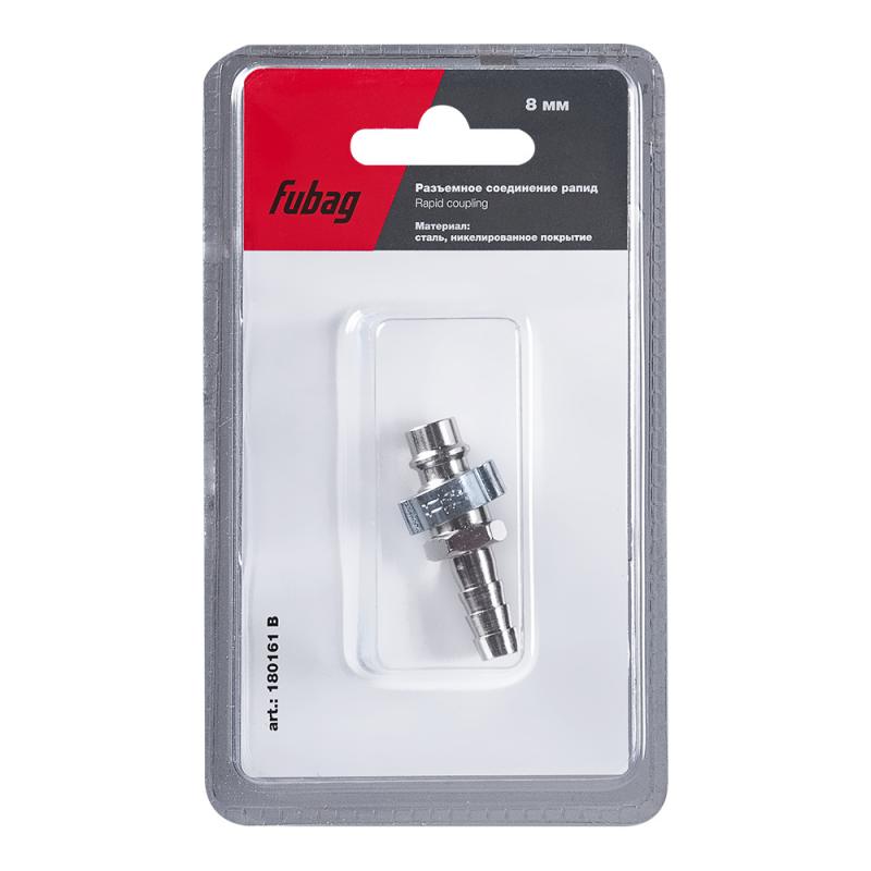 FUBAG Разъемное соединение рапид (штуцер), елочка 8мм с обжимным кольцом 8х13мм, блистер 1 шт