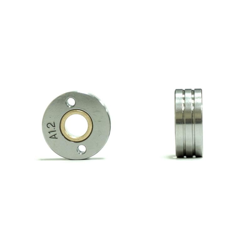 Подающие ролики, обычно, имеют две направляющие канавки сходного размера: 0.6/0.8мм, 0.8/1.0мм, 1.0/1.2мм и т.д. Сварщик при изменении сечения проволоки может перевернуть ролик нужной стороной и использовать его для подачи той проволоки, которая необходима в данный момент.