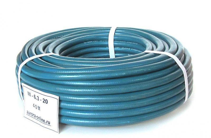 Кислородный шланг для газовой сварки и резки металлов, синий, ГОСТ 9356-75, состоит из внутреннего резинового слоя, нитяного каркаса из х/б волокна и наружного резинового слоя.
