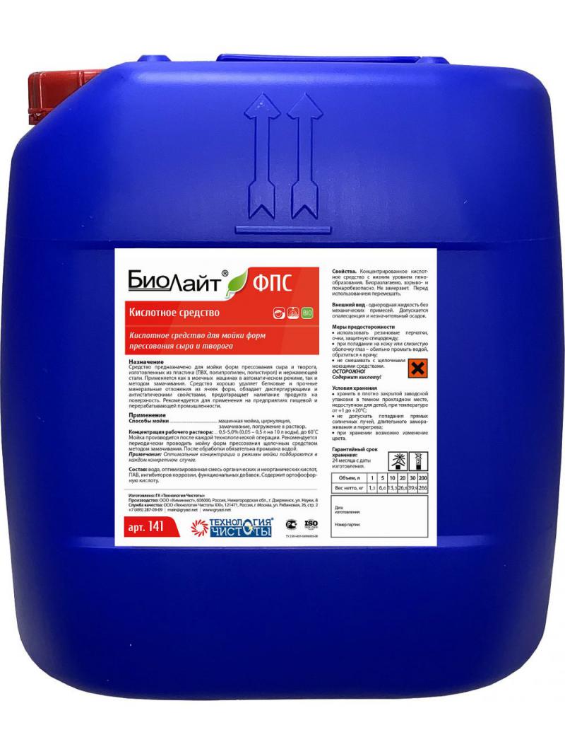 Концентрированное жидкое кислотное низкопенное средство на основе эффективных смачивателей, моющих добавок, комплекса органических и неорганических кислот предназначено для мойки форм прессования сыра и творога, изготовленных из пластика (ПВХ, полипропилен, полистирол) и нержавеющей стали. Применяется как в моечных машинах в автоматическом режиме, так и методом замачивания. Удаляет белковые и прочные минеральные отложения из ячеек форм, обладает антистатическими и бактерицидными свойствами, предотвращает налипание продукта на поверхность. В рекомендуемых концентрациях не оказывает отрицательного воздействия на нержавеющую сталь (марки 08Х18Н10, 08Х18Н10Т; имп. AISI 304, AISI 316), алюминиевые сплавы, резину и пластические материалы. Специально подобранный состав предотвращает растрескивание форм из полимерных материалов, сохраняет их мягкость и эластичность. Не применять концентрат средства для обработки алюминиевых сплавов, латуни, оцинкованных поверхностей. Экологически безопасно, биоразлагаемо.