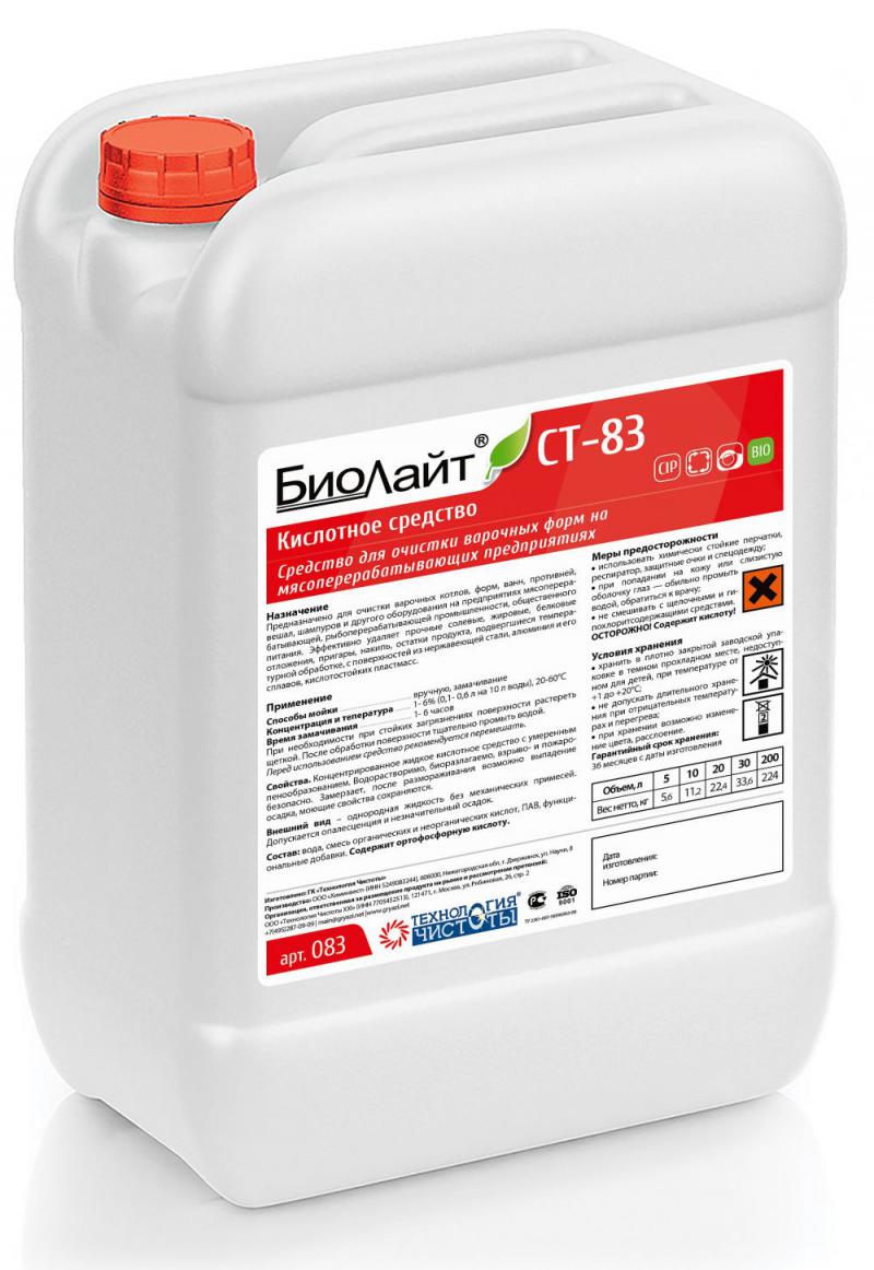 Концентрированное кислотное средство с умеренным пенообразованием, хорошо растворимо в воде предназначено для очистки варочных котлов, форм, ванн, противней, вешал, шампуров и другого оборудования на предприятиях мясоперерабатывающей промышленности, общественного питания. Эффективно удаляет прочные солевые, жировые, белковые отложения, пригары, накипь, остатки продукта, подвергшиеся температурной обработки, с поверхнотсей из нержавеющей стали, алюминиевых сплавов, кислотостойких пластмасс. Эффективно в воде любой жесткости. Не оказывает коррозионного воздействия на кислотостойкие поверхности, нержавеющую сталь (отеч. марки 08Х18Н10, 08Х18Н10Т; имп. AISI 304, AISI 316). Не применять для оцинкованных поверхностей. Содержит ортофосфорную кислоту. Экологически безопасно, биоразлагаемо.