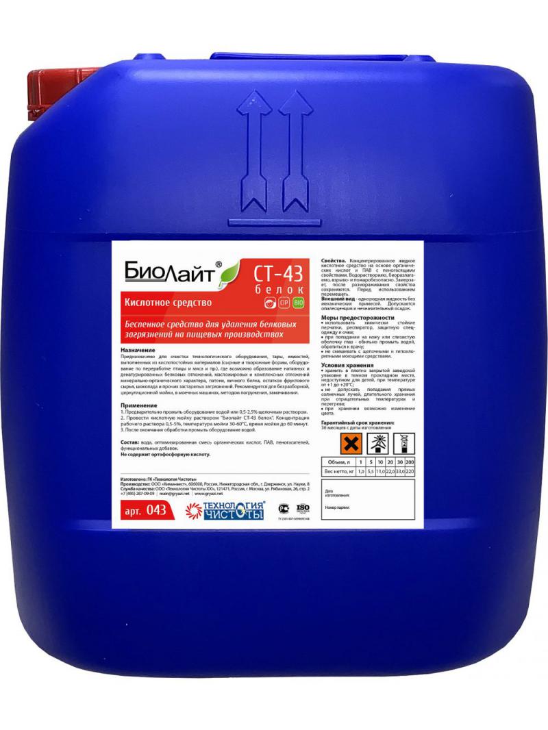 Концентрированное жидкое кислотное беспенное средство на основе органических кислот и ПАВ предназначено для очистки технологического оборудования, тары, емкостей, выполненных из кислотостойких материалов (сырные и творожные формы, оборудование для переработки птицы и мяса и пр.), где возможно образование нативных и денатурированных белковых отложений, масложировых и комплексных отложений минерально-органического характера, патоки, остатков фруктового сырья, шоколада и прочих загрязнений. Рекомендуется для СИП и циркуляционной мойки, в моечных машинах, методом погружения, замачивания. При высоких температурах мойки подавляет нежелательное вспенивание раствора (при температуре выше 40°С гасит протеиновую пену). Эффективно в воде любой жесткости и широком интервале температур (20-60˚С). При правильном применении не оказывает отрицательного воздействия на обрабатываемые поверхности. Экологически безопасно, биоразлагаемо.