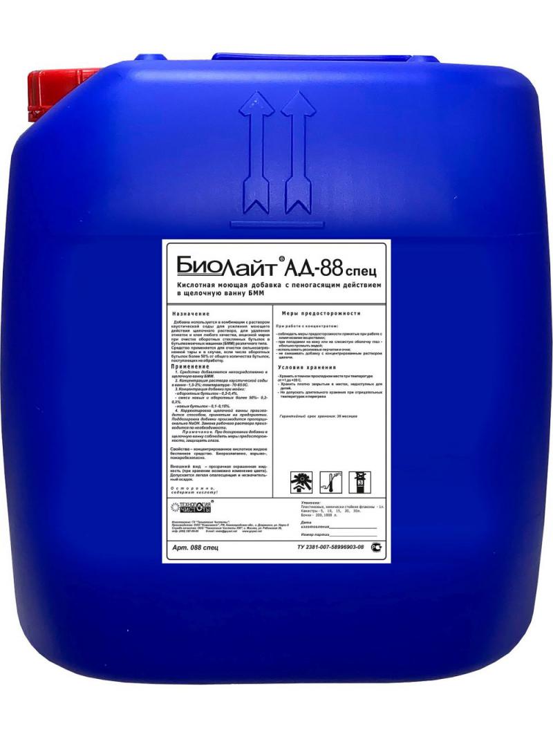 Концентрированное кислотное жидкое беспенное средство на основе ортофосфорной кислоты и специальных добавок используется в комбинации с раствором каустической соды для усиления моющего действия щелочного раствора для удаления этикеток и клея любого качества, акцизной марки при очистке оборотных стеклянных бутылок в бутылкомоечных машинах различного типа. Обладает ярко выраженным пеногасящим действием, при температуре свыше +40°С добавка подавляет нежелательное вспенивание щелочного раствора, не требуется дополнительно пеногаситель.