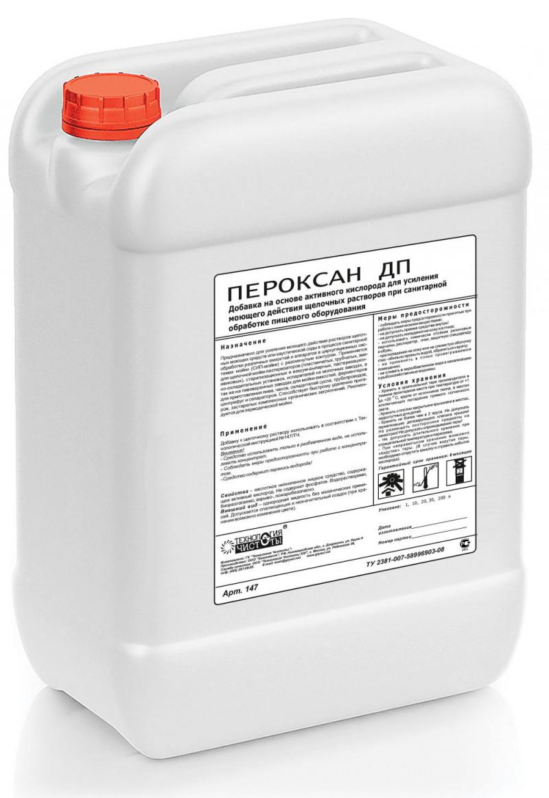 Кислотное низкопенное жидкое средство, содержащее активный кислород. Не содержит фосфатов предназначено для усиления моющего действия растворов щелочных моющих средств или каустической соды в процессе санитарной обработки различных емкостей и аппаратов в циркуляционных системах мойки (СИП-мойки) с разомкнутым контуром. Добавка на основе активного кислорода существенно усиливает в щелочной среде процессы окисления органики, что способствует эффективному удалению органической части загрязнения в т.ч. пригаров; эффективна в жесткой воде. Рабочие растворы добавки в комбинации с щелочами или щелочными моющими средствами использовать только на щелочестойких поверхностях. В рабочих растворах добавка (как самостоятельное средство), не оказывает отрицательного воздействия на нержавеющую сталь, цинк, алюминий и его сплавы, а также пластиковые и резинотехнические материалы, устойчивые к окислению. Не применять концентрат средства на оцинкованных поверхностях. Экологически безопасно, биоразлагаемо.