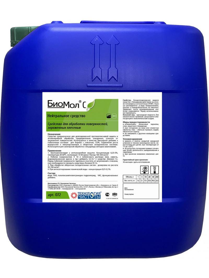 Концентрированное жидкое нейтральное средство c биоцидным действием на основе полимерных антисептиков (ПГМГ) предназначено для долговременной противоплесневой защиты и антимикробной обработки предварительно очищенных, отмытых от загрязнений поверхностей. Используется в качестве биоцидной добавки к побелочным составам для борьбы с плесенью, СОЖ, подавления роста водорослей и микроорганизмов в оборотных охладительных системах. Используется для санитарной обработки спецодежды методом замачивания. Обладает высокой фунгицидной и бактерицидной активностью, антимикробным действием в отношении грамотрицательных и грамположительных бактерий, плесневых грибов и дрожжей, а также водорослей и микромицетов - основных компонентов биоценоза обрастания, эффективно при низких концентрациях. Обладает пролонгированным действием (образует защитную пленку). Не агрессивно по отношению к любым поверхностям, не вызывает коррозии металлов. Не обесцвечивает ткани. Хорошо растворяется в воде. Экологически безопасно, биоразлагаемо.