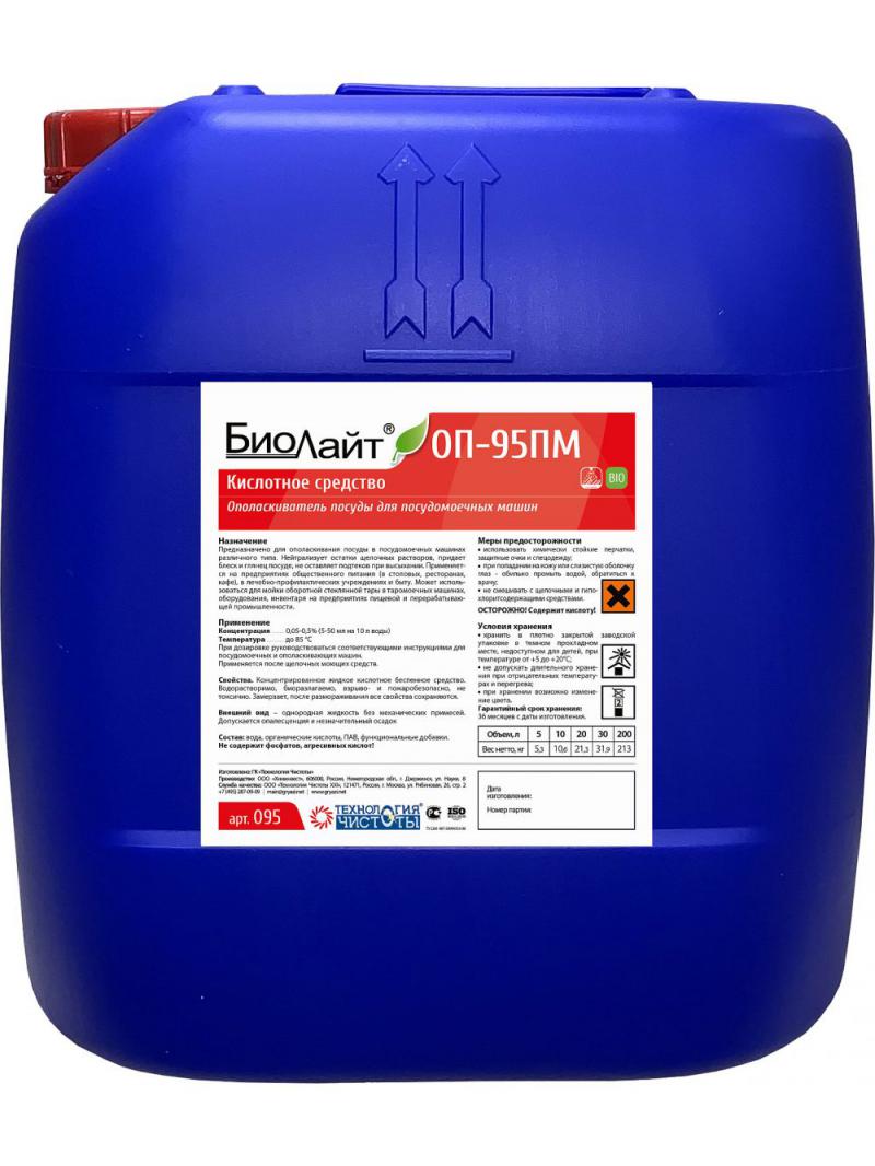 Концентрированное жидкое беспенное кислотное средство на основе органических кислот и специальных смачивателей предназначено для ополаскивания посуды в посудомоечных машинах различного типа. Обладает хорошими смачивающими свойствами. Способствует быстрому высыханию. Нейтрализует остатки щелочных растворов, придает блеск и глянец посуде, не оставляет подтеков при высыхании. Применяется на предприятиях общественного питания (в столовых, ресторанах, кафе), в ЛПУ и в быту. Может использоваться для мойки оборотной стеклянной тары в таромоечных машинах, оборудования, инвентаря на предприятиях пищевой и перерабатывающей промышленности. Экономично в использовании. Не содержит фосфатов, неорганических агрессивных кислот. Не вызывает коррозии, специальные добавки в составе ополаскивателя предотвращают образование отложений на поверхности оборудования. Экологически безопасно, биоразлагаемо.