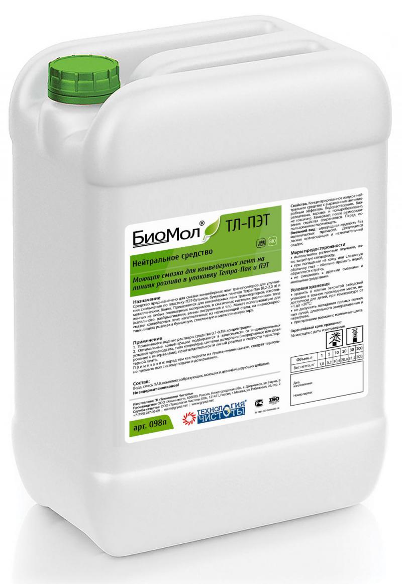 Концентрированное водорастворимое жидкое нейтральное средство на основе биоразлагаемых ПАВ предназначено для смазки конвейерных лент транспортеров для улучшения скольжения по пластику ПЭТ-бутылок, бумажных пакетов Тетра-Пак (0,2 - 2,0л) и металлических банок. Применяется для конвейерных лент транспортеров, изготовленных из любых полимерных материалов, в смазочных системах различного типа (капельного, разбрызгивания, ванны погружения). Может использоваться для смазки конвейерных лент, изготовленных из нержавеющей стали, на низкоскоростных линиях розлива в бумажную, стеклянную и металлическую тару. Экономично при дозировке. Обладает моющими, диспергирующими и бактерицидными свойствами, что позволяет эффективно удалять с ленты комплексные загрязнения и предотвращать возникновение слизистых отложений на поверхностях ленты. При использовании смазки не образуются отложения «известкового мыла», которое может накапливаться в случае применения смазок на мыльной основе. Экологически безопасно, биоразлагаемо.