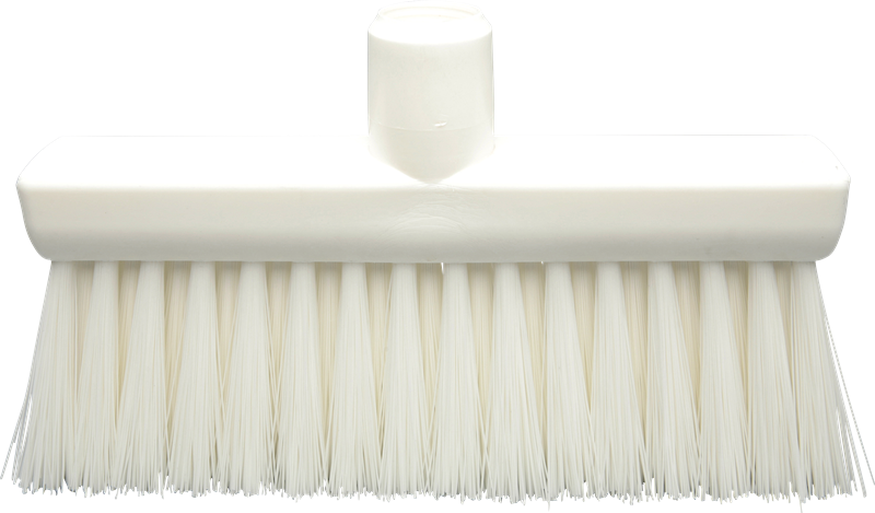 "Испанский стиль", щетки с правой резьбой, с углом наклона ручки 90 градусов. Щетка с ворсом средней жесткости предназначена для удаления такого мусора, как бумага, овощи, рыба, кусочки мяса с оборудования, участков между оборудованием и из-под столов.