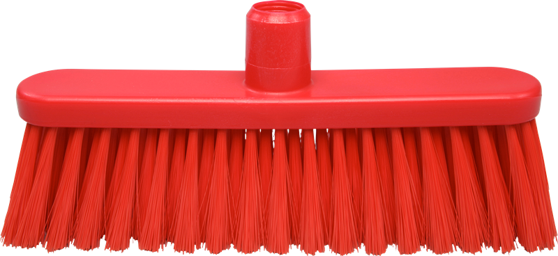 "Испанский стиль", щетки с правой резьбой, с углом наклона ручки 90 градусов. Щетка с ворсом средней жесткости предназначена для удаления такого мусора, как бумага, овощи, рыба, кусочки мяса с оборудования, участков между оборудованием и из-под столов.
