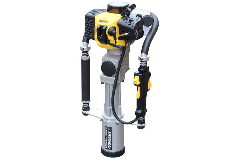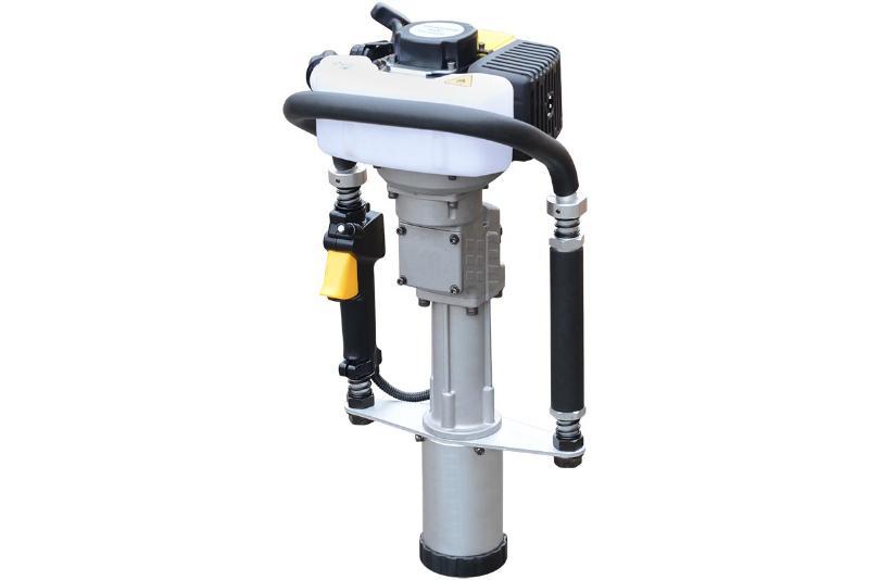Копер с бензиновым двигателем для забивки столбов диаметорм до 80 мм. Главным образом этот инструмент используется при строительстве ограждений. В отличии от электрического, он более мощный и не требует источника электропитания. По сравнению с пневматическими или гидравлическими, использование бензинового копера не требует дополнительной спецтехники, Значительно ниже по стоимости.