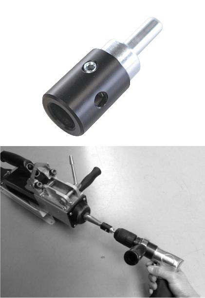 Приспособление для заточки выпуклых и круглых наконечников электродов точечной сварки в виде насадки с хвостовиком для дрелей и шуруповертов, оснащенных цанговым зажимом.