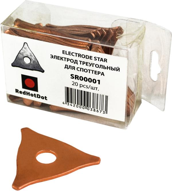 Треугольный электрод из омедненной стали, более мягкой, чем, сталь, из которой изготовлен кузов автомобиля. Имеет три рабочие поверхности. Рекомендуемые аксессуары: - арт. SR00011 Электрод-зажим для треугольного наконечника. Вес брутто: 0.28 кг Место 1 (ДхШхВ): 50х30х70 мм