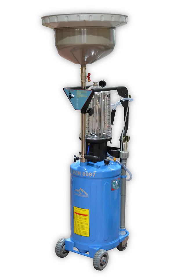 Мобильная пневматическая установка для сбора отработанного масла предназначена для слива в подъемную ванну или отвода через маслосборные щупы.