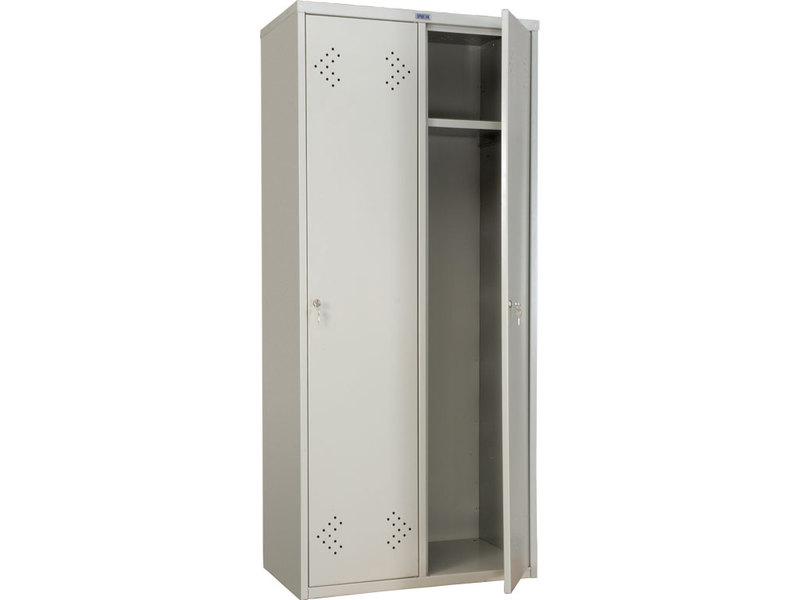 Шкаф раздевальный LS (LE)-21-60 размеры, мм: 1830x600x500 описание модели: 2 секции, полка, перекладина, крючок, ключевой замок, цвет серый полуматовый (RAL 7038), порошковое покрытие, антикоррозийная обработка.