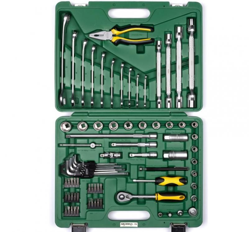 Набор инструментов 79 предметов AUTO Арсенал AA-C38UL79 имеет одну из самых широких комплектаций в размерном ряду 3/8 на российском рынке. Кроме головок, комплектуется большим количеством таких предметов, как ключи комбинированные, шестигранные и шарнирные, биты и большой ассортимент переходников. Сталь, из которой изготовлен инструмент, легирована хромом и ванадием с нанесением никелевого покрытия. Крепкий кейс из ударопрочной пластмассы. Наборы инструментов Арсенал имеют пожизненную гарантию. Инструмент Арсенал - Специально разработан для Российских условий!!!