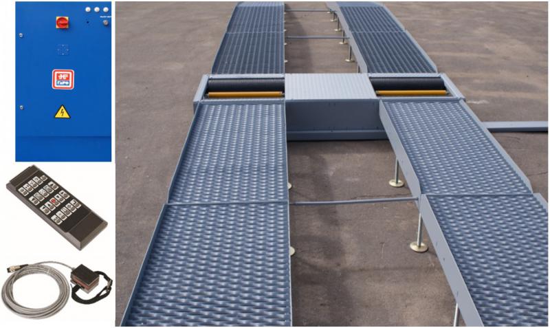 Передвижной стенд контроля тормозных систем легковых автомобилей, микроавтобусов и мини-грузовиков с нагрузкой на ось до 3,5 т. Напольная установка блока роликов. В комплекте: опорное устройство, эстакада, устройство взвешивания, шкаф силовой, переездные мостики, упоры колесные, комплект ДУ, беспроводной датчик усилия на органе управления ТС, модуль 4WD, ролики с точечной наплавкой SmG, модуль автоматической блокировки роликов. Комплект ПК-опция. Cовместное производство с концерном Snap-on (США).