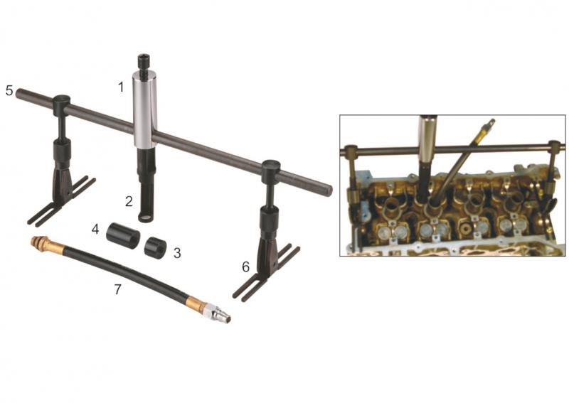 Особенность патента: Представляет собой полный набор инструментов для установки и извлечения пружины клапана без необходимости снятия головки блока цилиндров двигателя. Универсальный. Подходит для работы с 12, 16, 20, и 24-х клапанными двигателями. Простота в использовании и возможность подачи в цилиндр сжатого воздуха (для предотвращения падения клапана в цилиндр) предоставляет возможность для работы одному специалисту. Для решения аналогичной задачи, инструмент других поставщиков требует участия двух мастеров. Паз на 22-х миллиметровом толкателе позволяет заменять или извлекать сухари клапана. Большое окно плунжера позволяет работать под любым углом. Особенности данной модели позволяют сэкономить время, рабочую силу, а также средства на покупку нескольких инструментов других брендов. Применение: для работы с 12V, 16V, 20V и 24V двигателями. Упаковка: прочный переносной кейс. Габаритные размеры: 570/210/45 мм. (Д/Ш/В) Вес: 3520 гр.