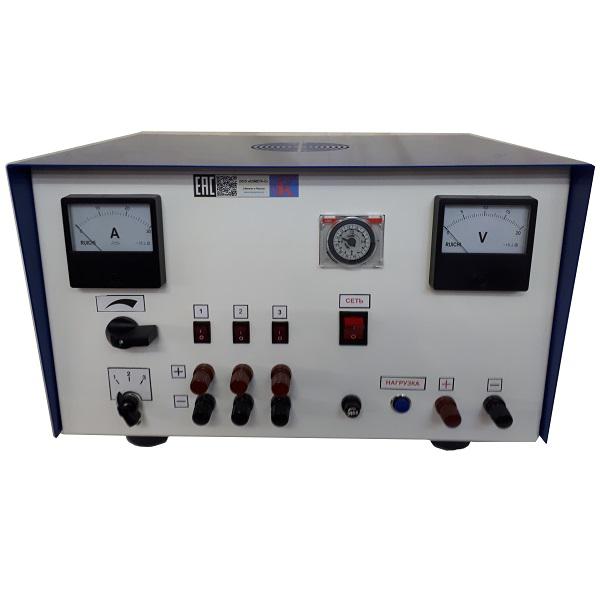 Зарядное устройство трехканальное регулируемое с автоматическим отключением предназначено для заряда стартерных АКБ с номинальным напряжением 12В и емкостью до 210 А.ч. позволяет заряжать три аккумуляторных батареи емкостью 132-210 А.ч. или различное количество аккумуляторных батарей емкостью от 45 до 90 А.ч. включенных параллельно с суммарным током не превышающим 20А на каждый канал в длительном режиме до 10 часов.