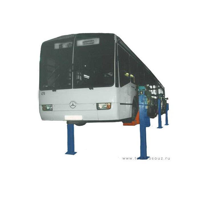 Подъем и опускание автобуса-сцепки производится с помощью подхватов, установленных на поворотных балках подъемника, подведенных под поддомкратные площадки автомобиля. Управление подъемником осуществляется со шкафа аппаратного, установленного на стойке № 1 и с постов управления, расположенных на стойках № 2, 3, 4, 5, 6