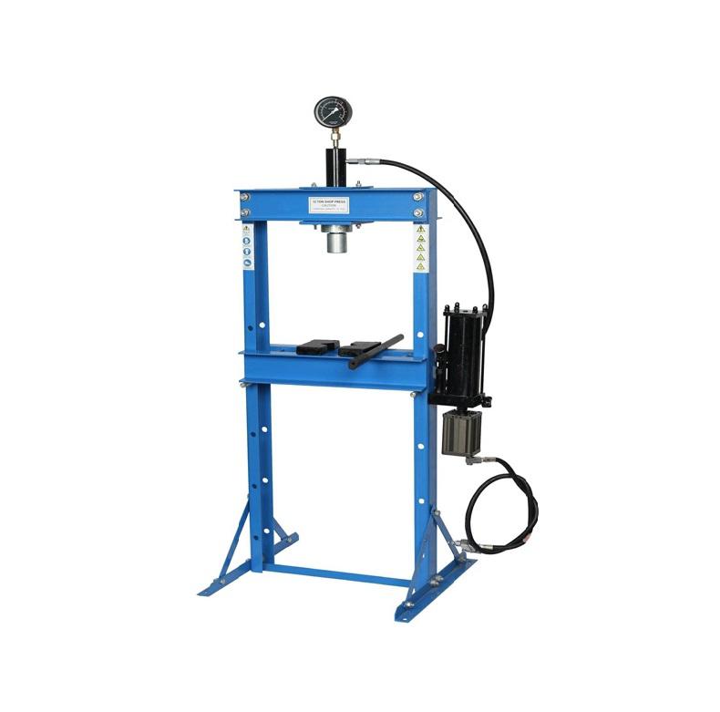 Пресс 20 тонн пневмогидравлический гаражный. Используется для запрессовки деталей машин в гаражах, автосервисах, слесарных цехах по ремонту трансмиссии, ДВС. Контроль усилия – визуально по жидкостному манометру.