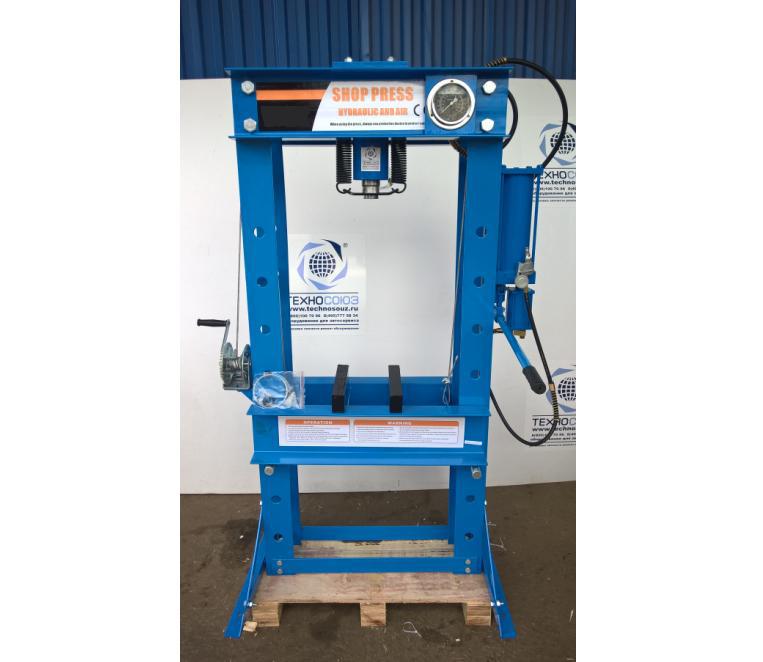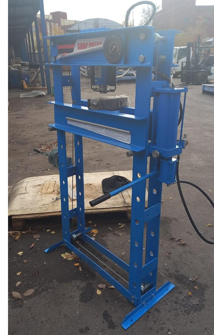 • Пресс укомплектован гидравлическим ручным насосом с максимальным усилием 50т.