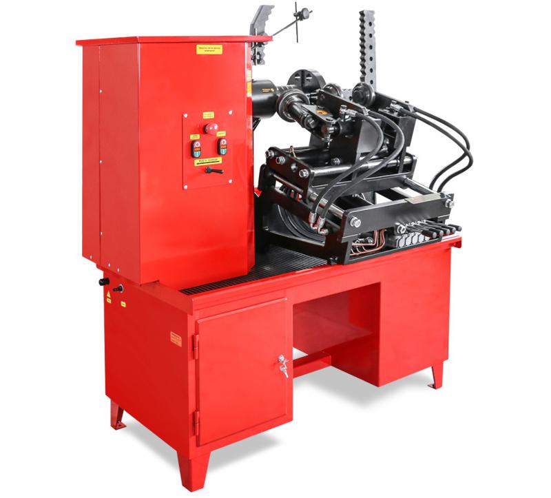 Основным преимуществом стенда является применение мощной гидравлики для перемещения и прижатия прокаточных роликов к диску, что позволяет станку справляться с ремонтом больших, до 17 дюймов в диаметре и до 3 мм толщиной стальных колёс легкогрузовых автомобилей и микроавтобусов. Отличительной особенностью станка является ручное управление каждым гидроцилиндром пятью рукоятками, расположенными на передней панели.