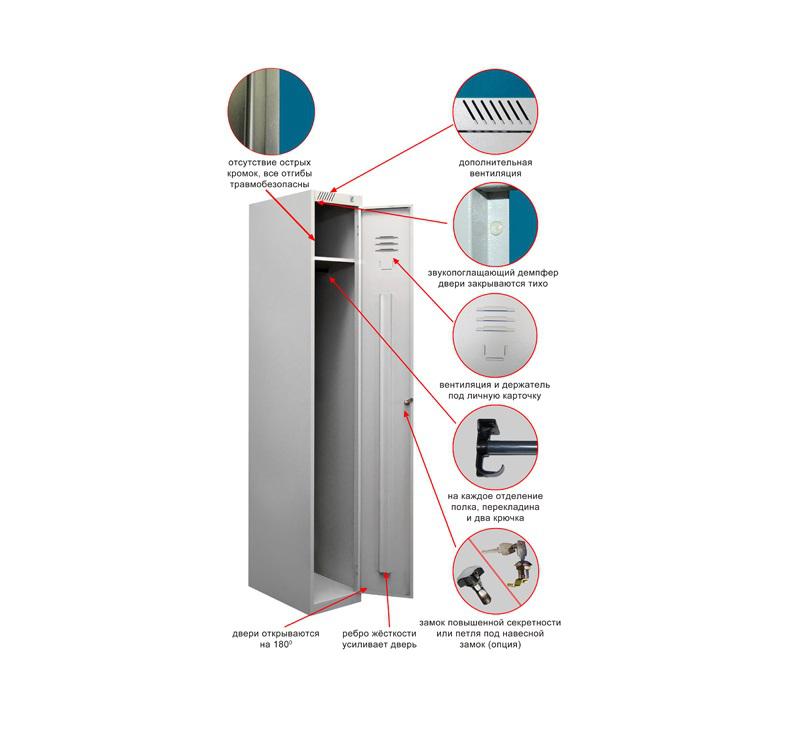 Комплектуется одной полкой, одним замком повышенной секретности, одной перекладиной, двумя крючками.