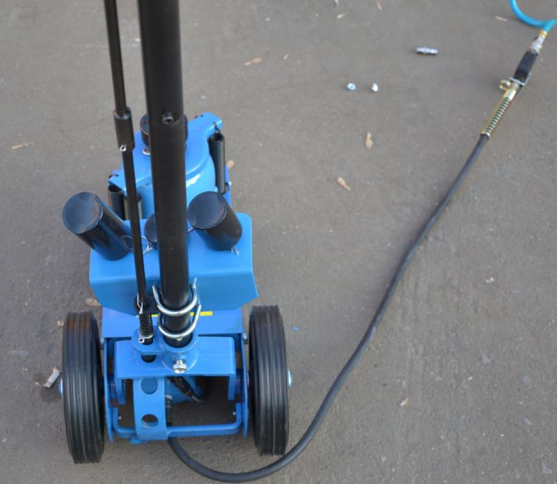 Технические особенности подкатного домкрата: прочная, надежная конструкция, современный уровень безопасности, длительный срок службы, присутствие разъема для подключения пневмосети, низкая цена.