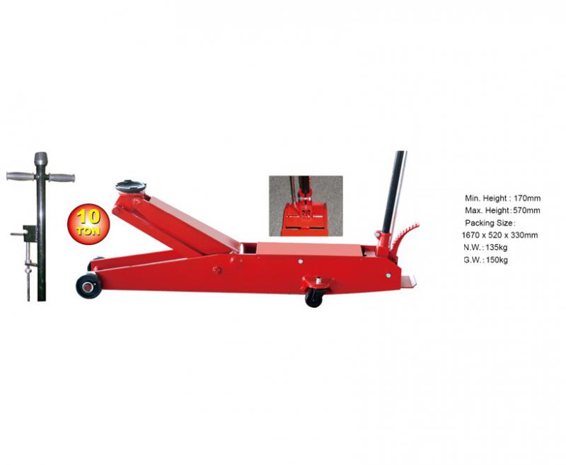 Гидравлический подкатной домкрат удлиненный г/п 10 т. Высота подъема 170-570 мм. Домкрат рекомендуется к применению в шиномонтажных мастерских, автосервисах и авторемонтных предприятиях.