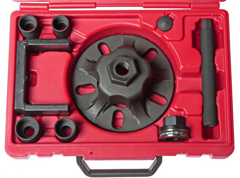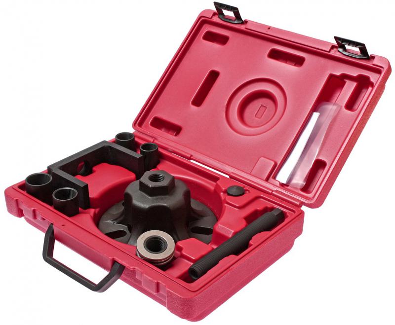 Съемник Способ применения: Зафиксируйте пластину в отверстиях колесного диска. Открутите болт, который фиксирует ступицу к приводном валу. Возьмите подходящий по размеру адаптер, затем зафиксируйте неподвижно приводной вал от коробки передач, приставьте рамку, зафиксируйте гайку и болт для дальнейшей работы по извлечению ступицы. Адаптеры ступицы: M22x1.5, M24x1.5, M27x1.5, M30x1.5. Упаковка: прочный переносной кейс. Габаритные размеры: 315/220/90 мм. (Д/Ш/В) Вес: 4161 гр. ПатентJTC-4873