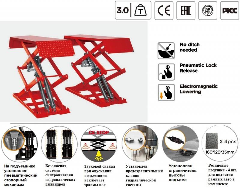- Безопасная система синхронизации гидравлических цилиндров (автомобиль не упадет с подъемника)