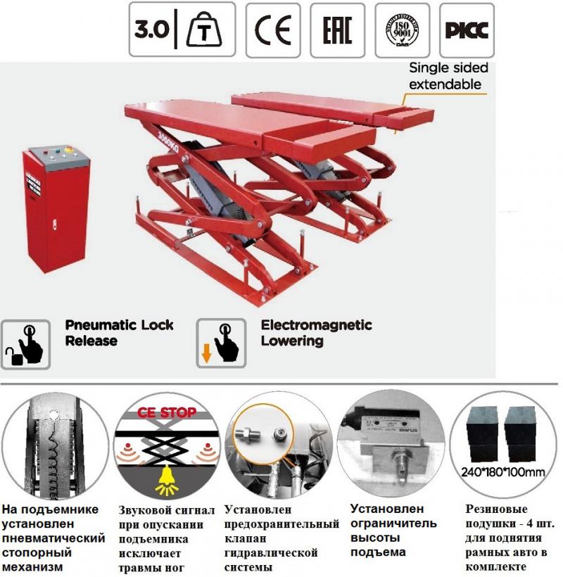 - Высота подхвата – 0 мм – может поднимать авто с «низкой» посадкой.