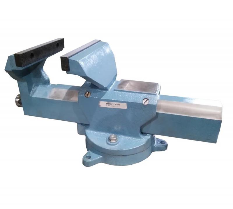 Преимущества: на губках присутствует особый рельеф, который обеспечивает максимально жёсткую фиксацию детали вне зависимости от формы; расширенный функционал благодаря возможности поворота тисков относительно основания; изготовлены из качественной износостойкой стали и чугуна с особым антикоррозийным покрытием.