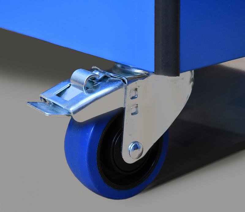 Тележка снабжена центральным замком с поворотом ригеля 180 градусов, который закрывает одновременно все ящики. Замок неподвижно и прочно закреплен на корпусе тележки. В комплекте имеется два ключа. Тяга замка подпружинена.
