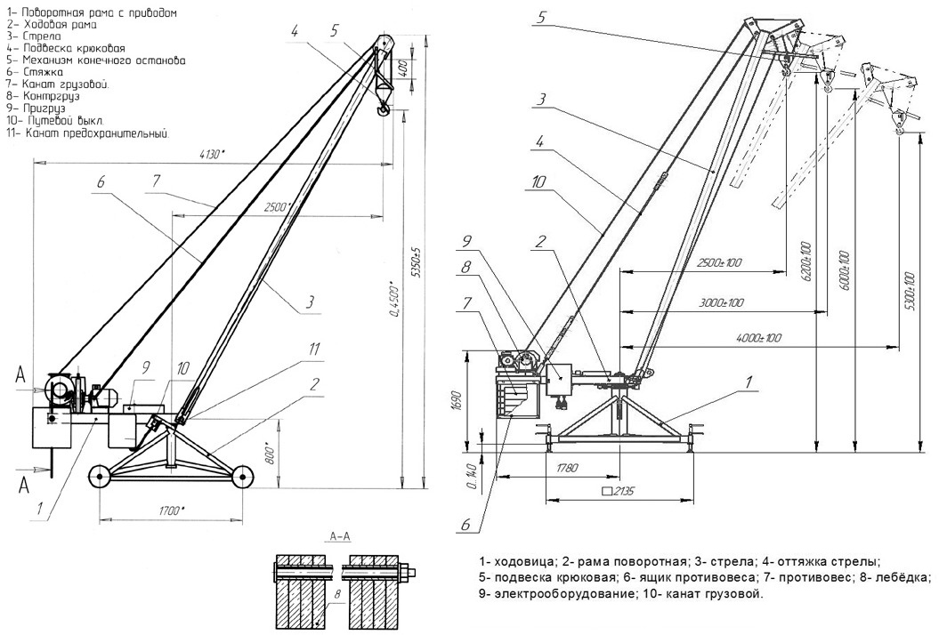 Кран представляет собой разборную конструкцию удобную для перевозки и монтажа. Для удобства перевозки, под заказ, поставляется с разборной стрелой. Длина элемента стрелы не превышает 3,5м.